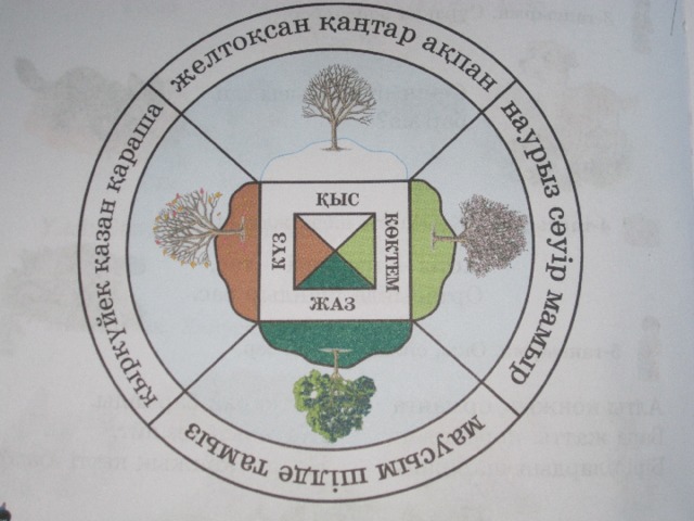 ҚЫС ҚҰНАР БЕРЕДІ, КӨКТЕМ ДӘН СЕБЕДІ, ЖАЗ БАПТАЙДЫ, КҮТЕДІ, КҮЗ ЖИНАЙДЫ, ТЕРЕДІ.