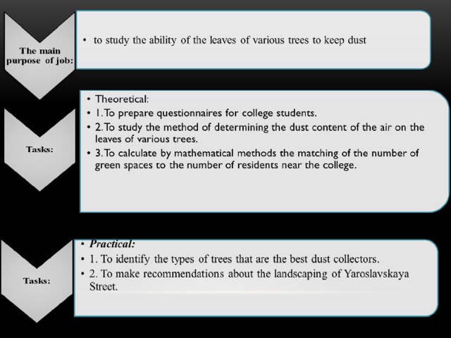 Conclusion: groupmates know that trees are the best dust collectors, but to plant a birch or a chestnut near the college is being researched now.