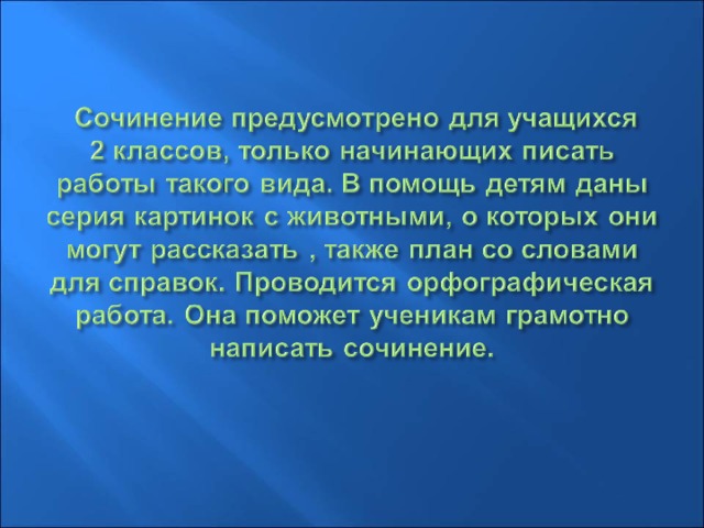 Проводится орфографическая работа, ученики объясняют сомнительные написания слов, после приступают к написанию сочинения.