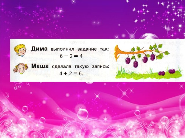 - сопоставь рисунок с математическим выражением;