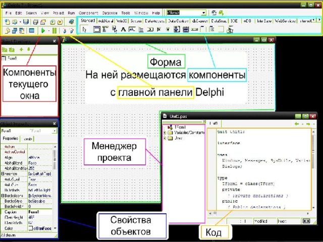Основу Delphi составляет не только сам язык, но и RAD (Rapid Application Development) - среда быстрой разработки программ.