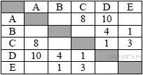 Между населёнными пунктами A, B, C, D, E построены дороги, протяжённость которых (в километрах) приведена в таблице.