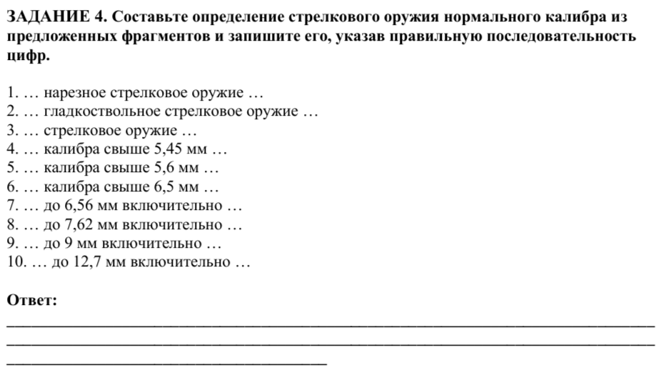 - Выбираем "нарезное стрелковое оружие" (вариант 1), так как именно нарезное оружие относится к категории нормального калибра