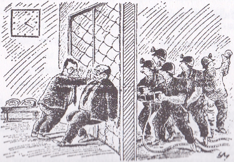 Карикатура відображає реакцію партійно-державного керівництва СРСР часів перебудови на