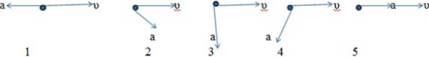 На каком из рисунков векторы скорости и ускорения тела соответствуют прямолинейному замедленному движению?