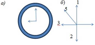 Центростремительное ускорение конца часовой стрелки в положении, изображённом на (рис а), направлено по стрелке (рис б).