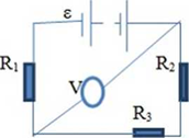 ЭДС батареи 100В, сопротивление R1=100Ом, R2=200Ом, R3= 300Ом, сопротивление вольтметра Rv=2кОм. Какую разность потенциалов U показывает вольтметр?