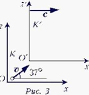 Электрон испускается под углом 37° к оси X со скоростью 0.5с. Определите абсолютное значение и направление скорости этого электрона относительно инерциальной системы, движущейся со скоростью 3*108м/с (рис.3).