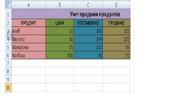 Введите формулы для нахождения количества проданых продуктов