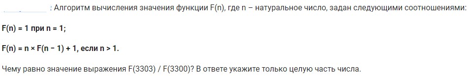 Алгоритм вычисления значения функции F(n), где n – натуральное число, задан следующими соотношениями: