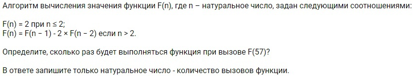 Алгоритм вычисления функций F(n)? Где n – натуральное число, задан следующими соотношениями: