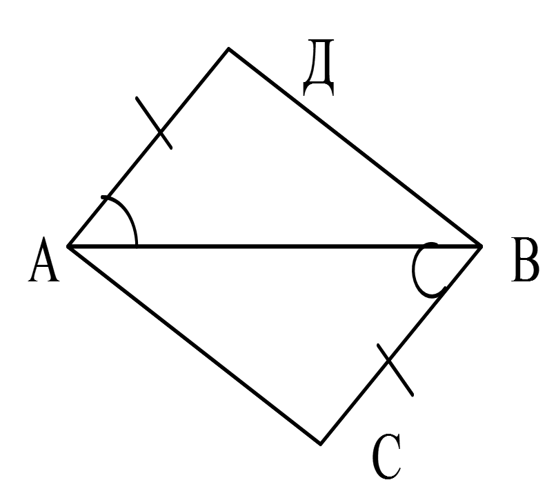 Используя рисунок, выясните, по каким элементам треугольник АДВ равен треугольнику АВС.