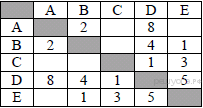 Между населёнными пунктами A, B, C, D, E построены дороги, протяжённость которых (в километрах) приведена в таблице.