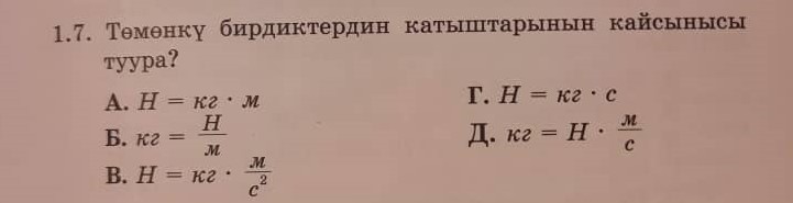 1.7. Төмөнкү бирдиктердин катыштарынын кайсынысы туура?