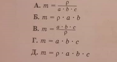 1.4. Тыгыздыгы р болгон кубдун узуну а, туурасы b, калыңдыгы с. Кубдун массасы кайсы формула менен аныкталат?