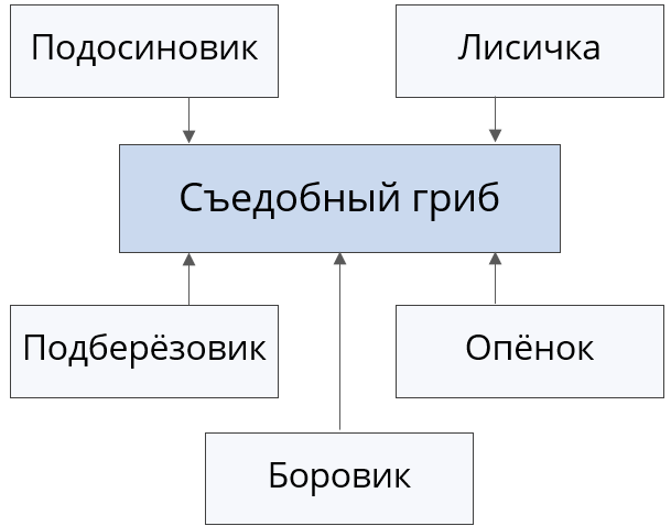 Верно ли составлена схема деления понятия "Съедобный гриб"?