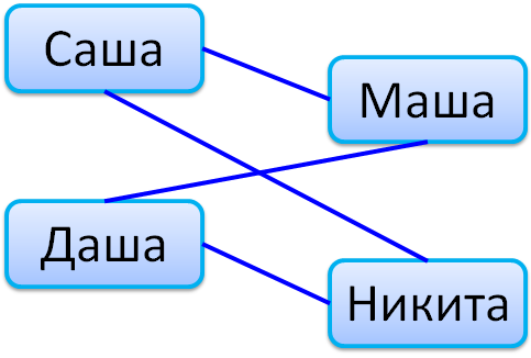 Саша, Маша, Даша и Никита играли в шашки. На схеме их имена соединены линиями, если они играли между собой партию в шашки. Отметьте верные утверждения для данной схемы.