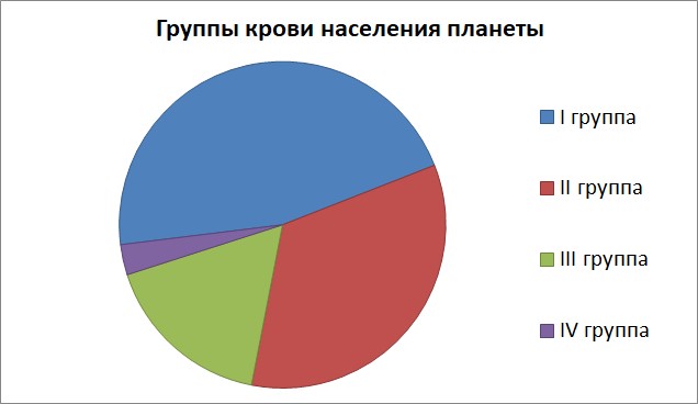 По диаграмме определите вторую по распространенности группу крови населения Земли