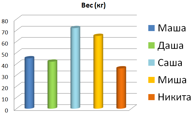 По диаграмме определите чей вес примерно 40 кг