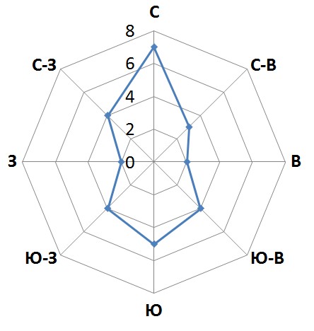 По диаграмме определите сколько дней дул северный ветер?