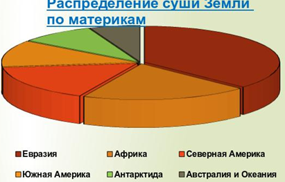 На диаграмме показано распределение суши по материкам.. Какой материк занимает большую часть суши?