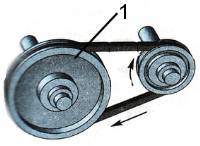 На рисунке шкив, обозначенный цифрой 1 является ведомым. Такая передача ...........
