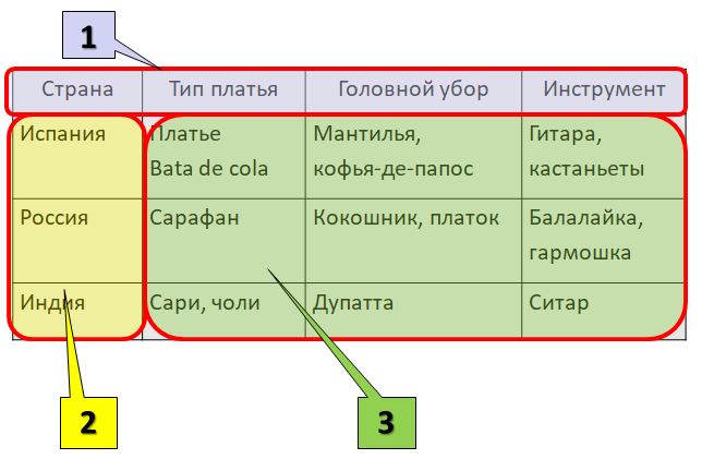 - Заголовки строк и столбцов должны быть краткими и не содержать лишних слов