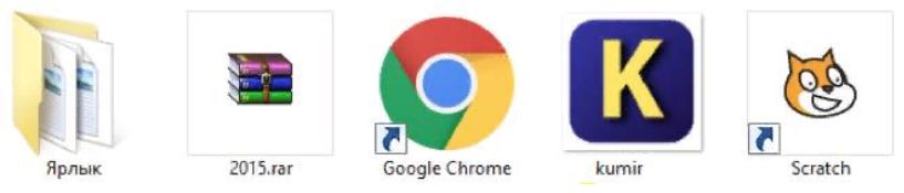 Сколько всего ярлыков размещено на фрагменте рабочего стола?