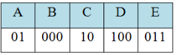 Для пяти букв латинского алфавита заданы их двоичные коды (для некоторых букв - из двух битов, для некоторых - из трёх битов). Эти коды представлены в таблице: