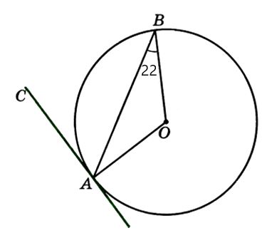 Вычислите значение ᴗАВ окружности, заключенной внутри угла, если АС - касательная к окружности.