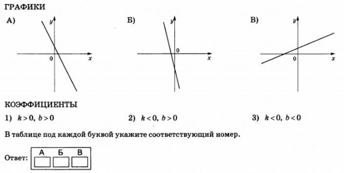 Установите соответствие между коэффициентами и графиками. В ответ запишите числа без пробелов и запятых (например, 123)