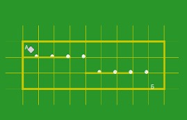 Какие команды должен выполнить робот, чтобы он переместился в клетку Б и закрасил все отмеченные клетки.