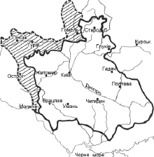 На карті позначено територію Гетьманщини