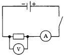 На рисунке показана электрическая цепь. Показание вольтметра 8 В, показание амперметра 0,2 А. Сопротивление резистора равно