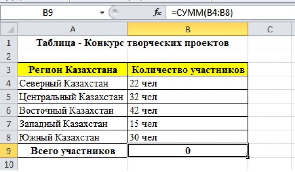 Данные в диапазоне В4:В8 были отредактированы, что позволило получить правильный результат для ячейки В9.