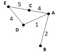 Определите длину кратчайшего пути между пунктами A и F (при условии, что передвигаться можно только по построенным дорогам).