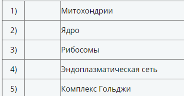 1) - номер в таблице, цыфра за скобкой - номер органоида на рисунке