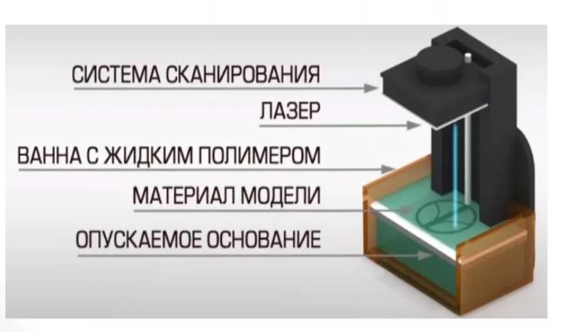 - самая первая технология 3D-печати, когда модели изготавливаются из жидких фотополимерных смол с помощью ультрафиолетового лазера или его аналога.