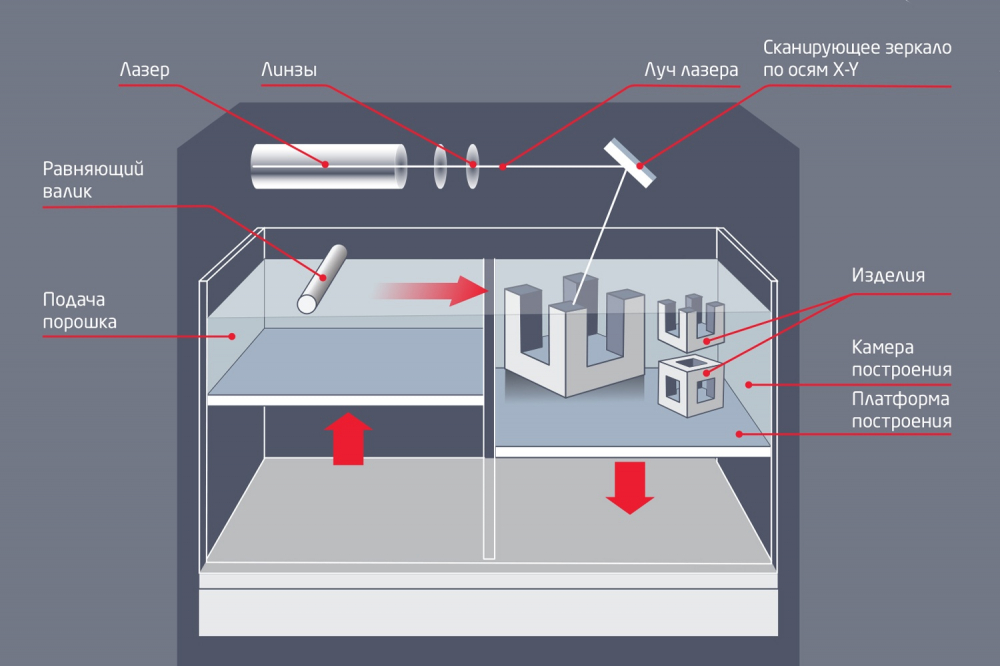 - это самый распространенный метод ЗD-печати металлом. Используя порошки из стали, титана, алюминия или других металлов, можно изготовить геометрически сложные изделия, детали машин и двигателей для промышленности.