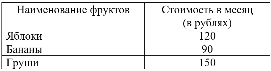 В таблице указаны расходы семьи на фрукты за апрель. Рассмотри таблицу и ответь на вопросы: