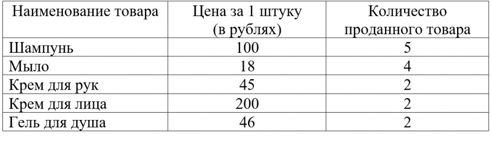В магазине косметики продавец составил таблицу, в которую внес