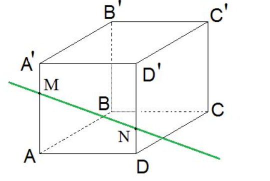 Какие прямые кроме АА' и DD' лежат в одной плоскости с прямой MN?