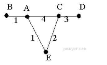 В таблице приведена стоимость перевозок между пятью железнодорожными станциями, обозначенными буквами A, B, C, D и E. Укажите схему, соответствующую таблице.