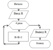 Выполните алгоритм, представленный на блок-схеме, если известно, что R=5.