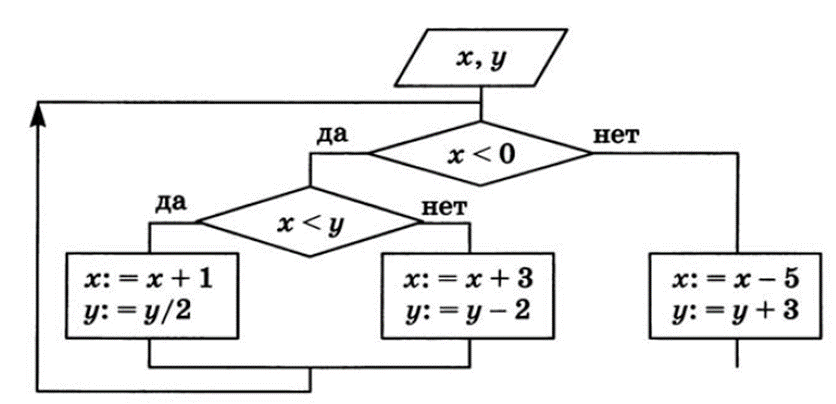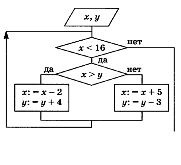 Определите значения переменных x=9 и y=5 после выполнения фрагмента алгоритма: