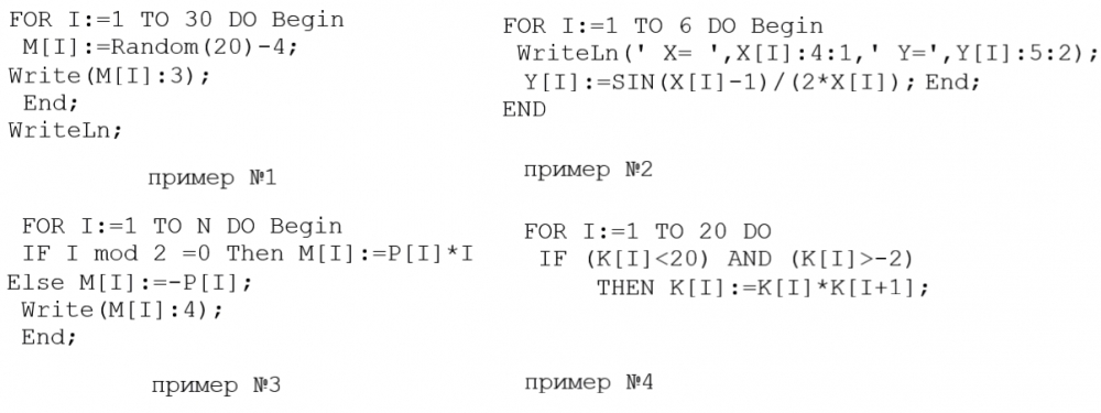 - Алгоритмы всех примеров выполняют заполнение массивов