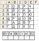 По указанным адресам впиши в клеточки буквы. Слово, которое у тебя получилось, означает: