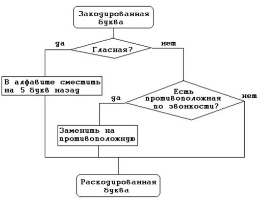 Расшифруйте слово по алгоритму, представленному в виде блок-схемы на рисунке.