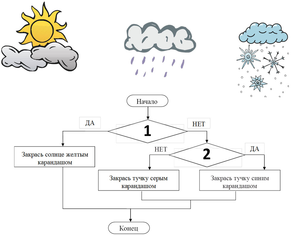 Какие условия должны стоять в алгоритме, если рисунки рисовались по этому алгоритму?