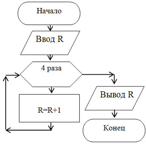 Выполните алгоритм, представленный на блок-схеме, если известно, что R=5